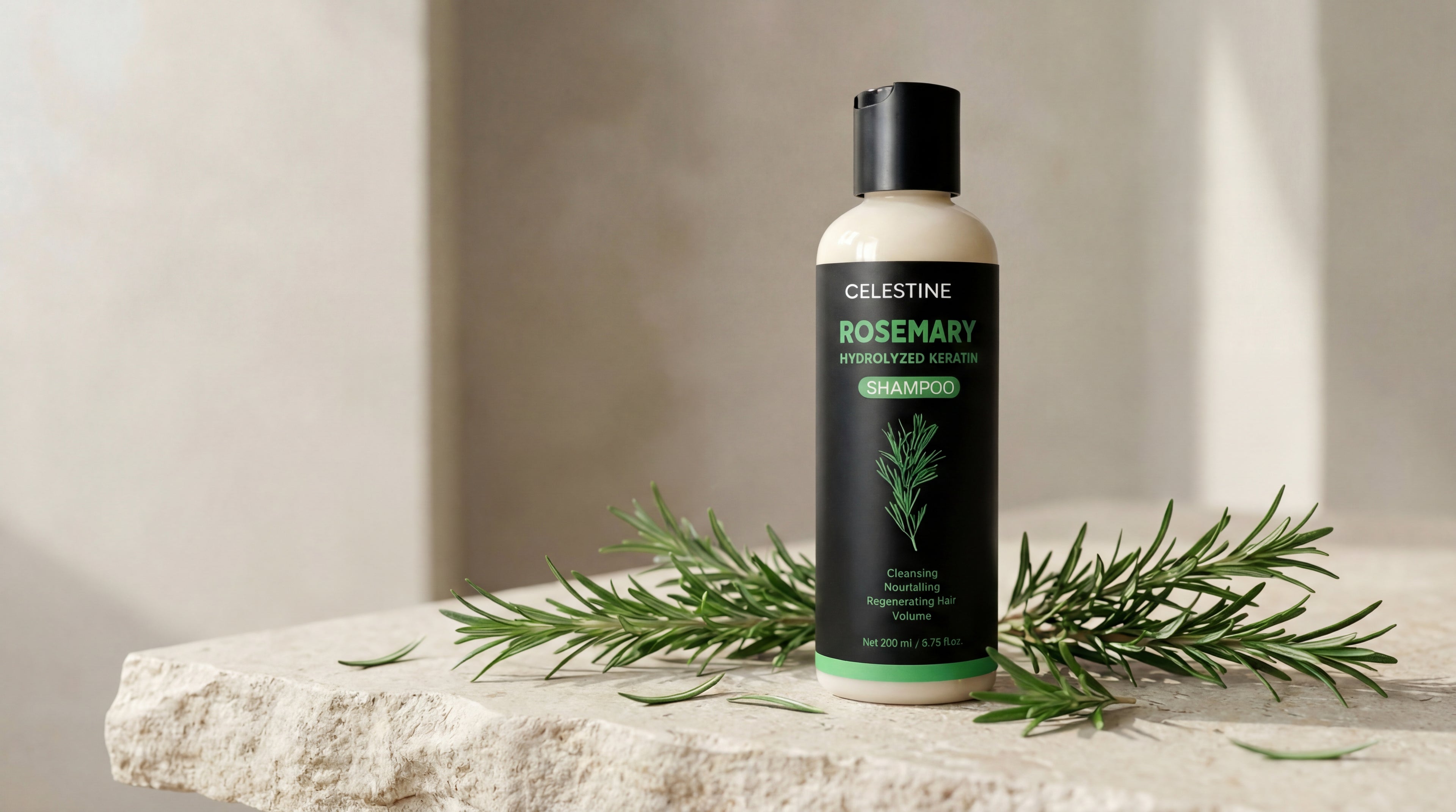 Shampoing enrichi au romarin & kératine hydrolysée. Aide à renforcer les racines, apporter du volume et améliorer l'apparence des cheveux. Sans sulfates, sans silicones, adapté à un usage quotidien.